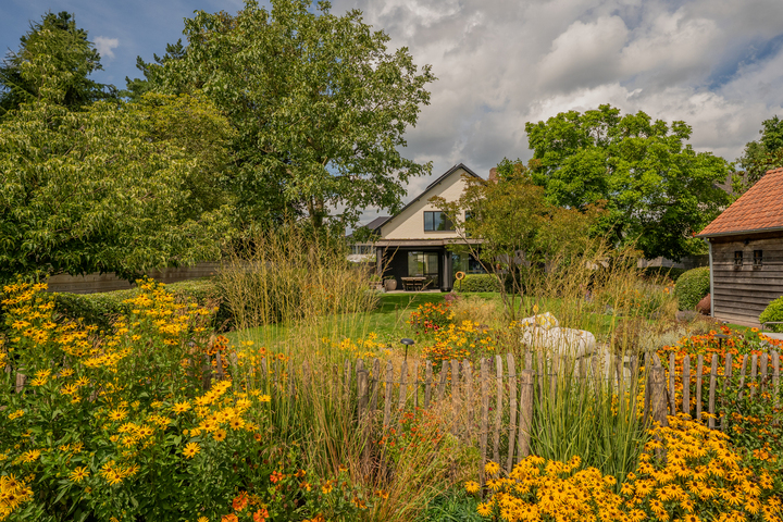 Welkom in de wereld van stijlvol, jong, landelijk wonen. Onze focus ligt hier in deze tuin op het omarmen van eenvoud, waardoor het weidse landschap op een unieke manier wordt versterkt.